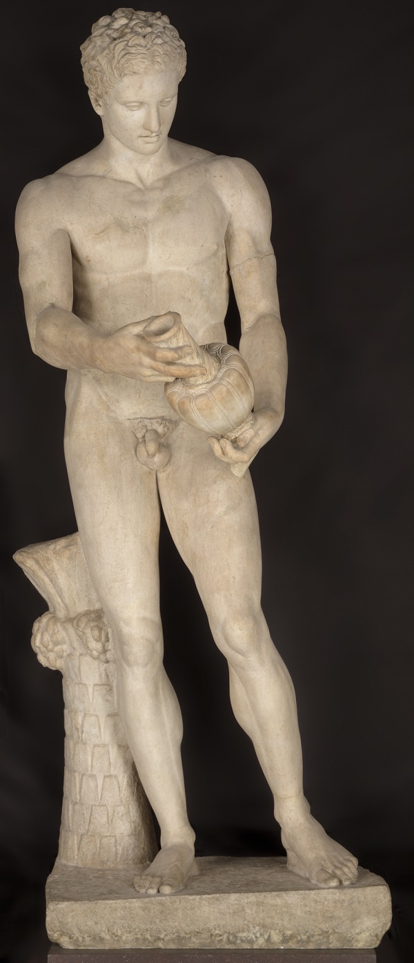 La statua dell’Apoxyomenos (o Atleta con lo strigile), verosimilmente arrivata da Roma intorno alla metà del Cinquecento, giunse agli Uffizi all’epoca della loro formazione, sul finire del XVI secolo, dopo essere stata esposta nella Sala delle Nicchie a Palazzo Pitti. La statua, che raffigura un atleta in nudità ideale, riproduce un archetipo in bronzo databile intorno alla metà del IV secolo a.C., che è stato attribuito a un allievo di Policleto, il massimo scultore della seconda metà del IV secolo a.C. Il suo atteggiamento era quello di pulire lo strigile o, più verosimilmente di passarlo sul dorso della mano sinistra. Sembra quasi che l’artista abbia voluto contrapporre un volto con tratti ancora da adolescente, al corpo estremamente sviluppato, che aveva consentito all’atleta di partecipare con successo alle competizioni dei ragazzi, misurandosi con successo in un agone pesante, verosimilmente il pugilato, come suggeriscono i padiglioni auricolari leggermente rigonfi. Sui limiti di età di queste gare, riservate ad atleti che non avevano ancora raggiunto l’età adulta, alcuni pensano che vi fossero ammessi atleti fino a diciannove anni, altri ritengono invece che il limite superiore fosse rappresentato dai diciotto anni. Certo è che anche ai vincitori di queste gare venivano tributati onori e celebrazioni. Basti pensare ad Antipatro di Mileto, vincitore nel pugilato dei ragazzi nel 388 o nel 384 a.C., che Dionisio I cercò di corrompere perché si dichiarasse siracusano, ma che nell’iscrizione della statua, scolpita da Policleto II, dichiarava di essere stato il primo degli Ioni a vincere a Olimpia, dove ricevette grandi onori anche Ateneo di Efeso, vincitore nella stessa gara, forse nel 352 a.C. In questo contesto potrebbe avere un senso il fatto che due delle copie in bronzo dell’Atleta con lo Strigile appaiono lavorate in una stessa bottega, da localizzare in Asia Minore. L’esistenza di repliche fedeli in materiali diversi (marmo, basanite, bronzo), accompagnata da versioni di formato ridotto e da varianti, conferma in ogni caso che l’archetipo dell’Atleta con lo strigile era un’opera famosa di età classica. Il taglio degli occhi e delle labbra socchiuse visibile nella statua fiorentina appare netto ed elegante, mentre il modellato del volto è improntato a un gusto classistico sobrio, ma raffinato, che ci indirizza verso un periodo compreso tra il 130 e il 150 d.C. Una conferma in questo senso è offerta dal sostegno a forma di tronco di palma, di un tipo attestato in statue dell’epoca.