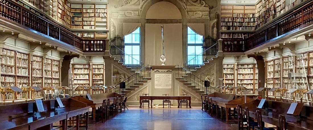 Per conoscere e capire la Biblioteca degli Uffizi (ex Biblioteca Magliabechiana) e il raffinato ambiente che l’accoglie è importante soffermarsi innanzitutto sulla figura di Antonio Magliabechi, il cui busto severo campeggia in fondo al Salone. Antonio Magliabechi (Firenze 1633-1714) è stato erudito, bibliofilo italiano e bibliotecario dei granduchi medicei di Toscana. Cosimo III gli affidò la custodia della Biblioteca Medicea Palatina, a Palazzo Pitti, mentre per la biblioteca del Cardinal Leopoldo stese un vasto catalogo. Si occupò inoltre della raccolta libraria del principe Ferdinando, formatasi alla fine del Seicento.