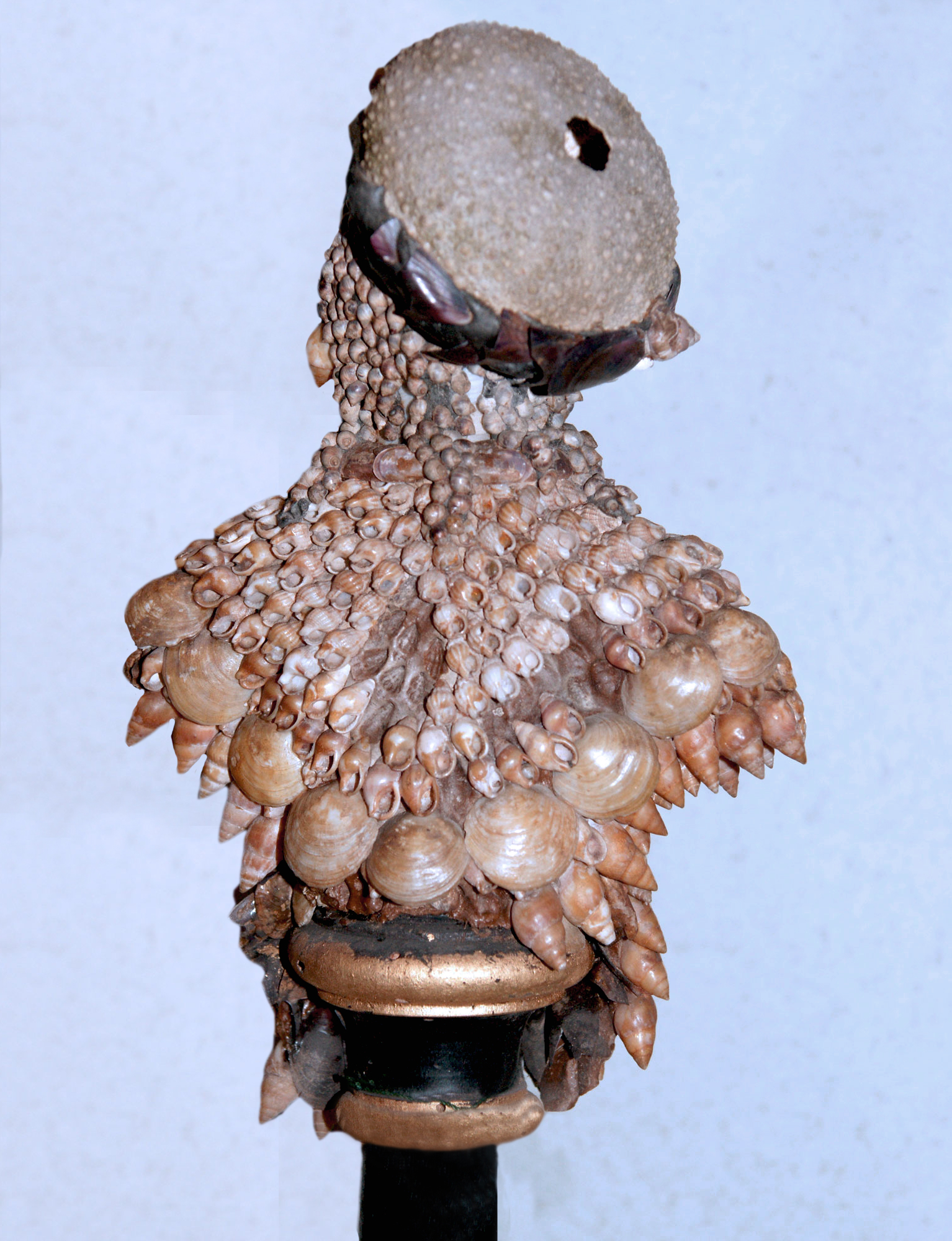 L’opera, dotata di una base in legno tornito e parzialmente dorato, rappresenta un busto maschile interamente ricoperto di piccole chiocciole e valve di conchiglie di diverse specie. La testa appare coperta da un singolare copricapo formato dal dermascheletro di un riccio di mare.