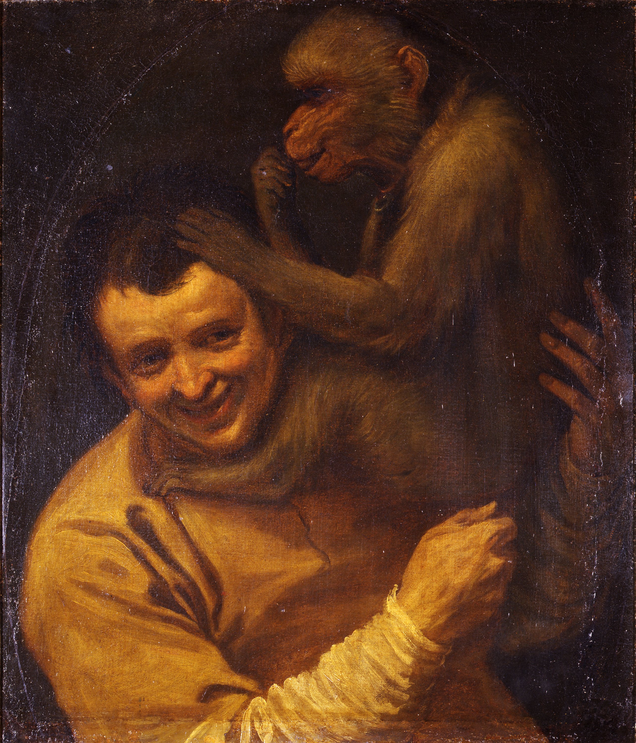 Il naturalismo di questo dipinto, così spontaneo nella raffigurazione della bertuccia che giocherella coi capelli di un giovane divertito, ha indotto parte della critica verso una assegnazione ad Annibale Carracci pittore bolognese che sin dai suoi esordi si contraddistinse per una tendenza a rappresentare scene tratte dal mondo reale a lui contemporaneo; si ricordano in tal senso alcune sue opere celebri come il ‘Mangiafagioli’ o la ‘Macelleria’. Annibale, insieme al fratello Agostino e al cugino Ludovico, dettero un’impronta decisa allo svolgimento artistico della pittura bolognese e poi italiana, forgiando un ideale classico e naturalista al tempo stesso. Nel 1582 Annibale ed Agostino fondarono a Bologna l'Accademia detta degli Incamminati, con lo scopo di ricondurre la pittura fuori delle angustie del manierismo, all'esempio dei grandi maestri del sec. XVI, ponendo al centro lo studio dell’anatomia e delle figure dal vero.