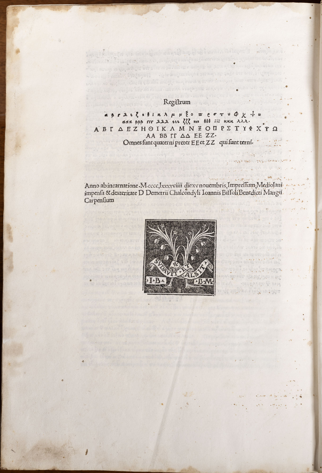 L’incunabolo conservato alla Biblioteca degli Uffizi, come indicato nella formulazione di edizione del colophon, fu stampato a Venezia nel 1480 dal tipografo Erhard Ratdolt, sotto il Doge Giovanni Mocenigo. Sfogliando l’esemplare si intuisce la fortuna di questa celebre storia universale apprezzata per l’eccezionale corredo iconografico, arricchito da pregevoli xilografie (Arca di Noè, Torre di Babele, vedute di città, mappe del mondo antico, etc…) e divisa in sei parti secondo la filosofia agostiniana delle sei età dell’uomo. Il layout di pagina è davvero innovativo e all’avanguardia per l’epoca: molte pagine presentano al centro una doppia riga che separa la storia biblica da quella secolare sottostante. In prossimità della striscia alcuni cerchi contengono i nomi dei personaggi biblici e storici. Sicuramente nell’ambito della storia del libro è uno dei primi casi in cui per l’impaginazione si attuò una proficua collaborazione fra l’autore e lo stampatore. Non si conosce la provenienza del volume che è testimoniato agli Uffizi per la prima volta nell’Inventario della Galleria delle Statue del 1825.