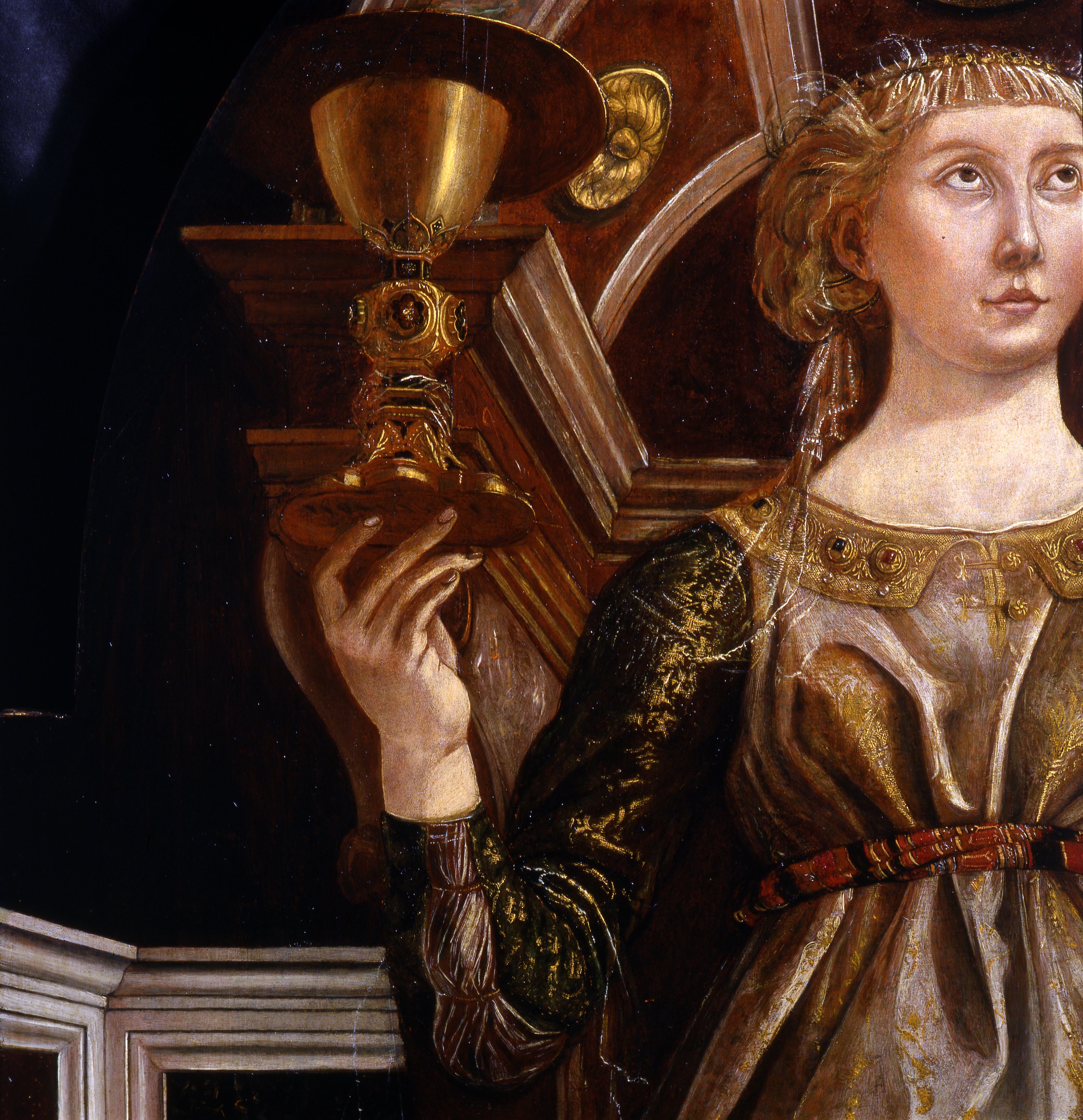 Anche in quest’opera Piero del Pollaiolo esibisce uno straordinario virtuosismo nella raffigurazione degli oggetti di oreficeria, ispirati alle suppellettili ecclesiastiche più raffinate e preziose in uso nel XV secolo.