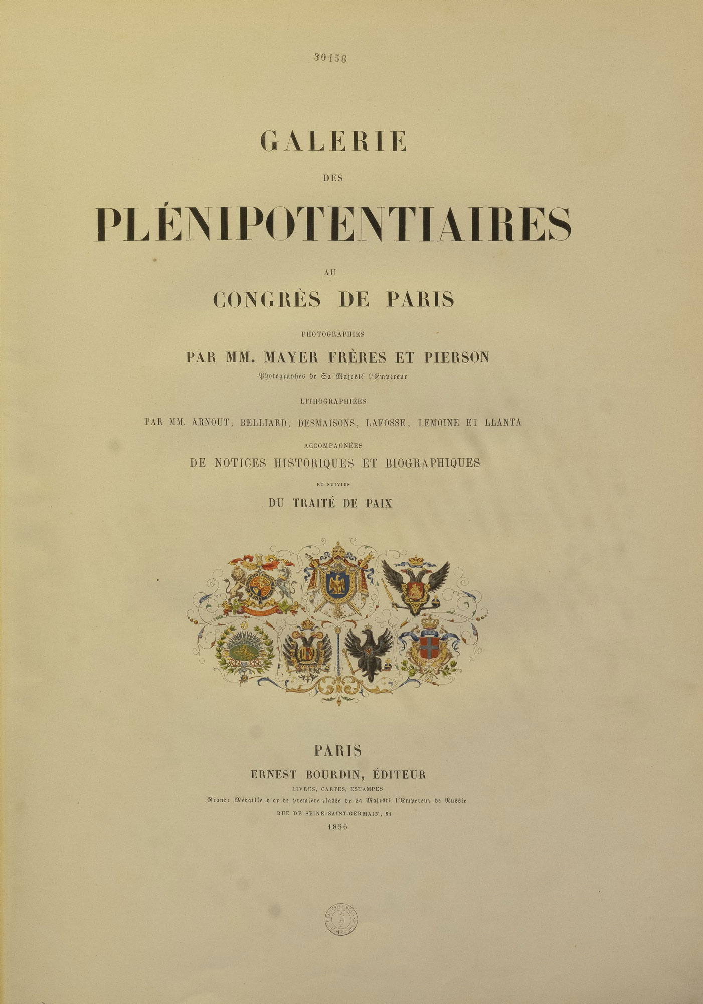 Galerie des plénipotentiaires au Congrès de Paris: accompagnées de notices historiques et biographiques et suivies du traitè de paix, photographies par mm. Mayer fréres et Pierson, lithographièes par mm. Arnout [et alii], Paris, Bourdin, 1856