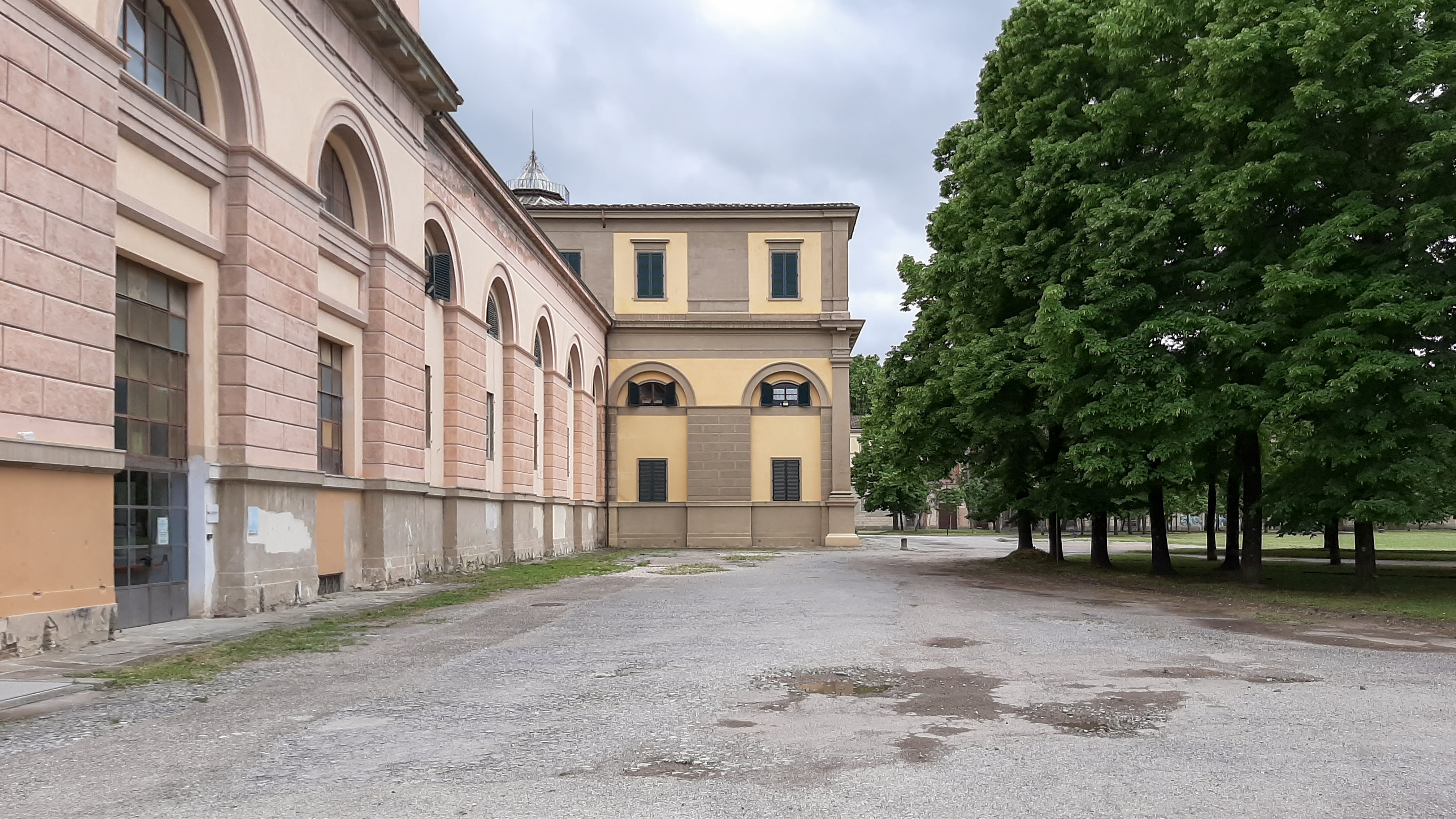 Realizzato fra il 1867 e il 1869 per conservare paglia, fieno e biade, l’immobile è composto da un lungo corpo di fabbrica parallelepipedo, suddiviso in due livelli, con le porzioni terminali che avanzano sul lato rivolto verso il Giardino. A queste sono affiancati due blocchi cubici ripartiti su tre livelli, i cui piani superiori erano originariamente utilizzati per alloggiare il personale di servizio, mentre il piano terra era riservato ai cavalli. Il piano terra, all’epoca utilizzato come stalla e deposito di carrozze e calessi, presenta una successione di pilastri ed arcate che sorreggono la copertura in volte a vela; Al piano primo, sul lato sud che prospetta verso viale Machiavelli, vi è un porticato ad arcate che interessa tutta la parte centrale e che permette l’accesso diretto al piano, dove era previsto lo stoccaggio dei foraggi, che potevano essere scaricati entrando all’interno con i carri, in un percorso ancora oggi segnato dalla pavimentazione in pietra serena che interrompe quella continua in cotto. La copertura è realizzata con imponenti capriate lignee che sorreggono le falde del tetto. Sul fronte nord grandi aperture ad arco, tamponate con il caratteristico motivo architettonico del grigliato in laterizio, permettevano la circolazione dell’aria, necessaria per la conservazione della paglia, a cui contribuiva anche lo stesso orientamento nordsud del fabbricato.