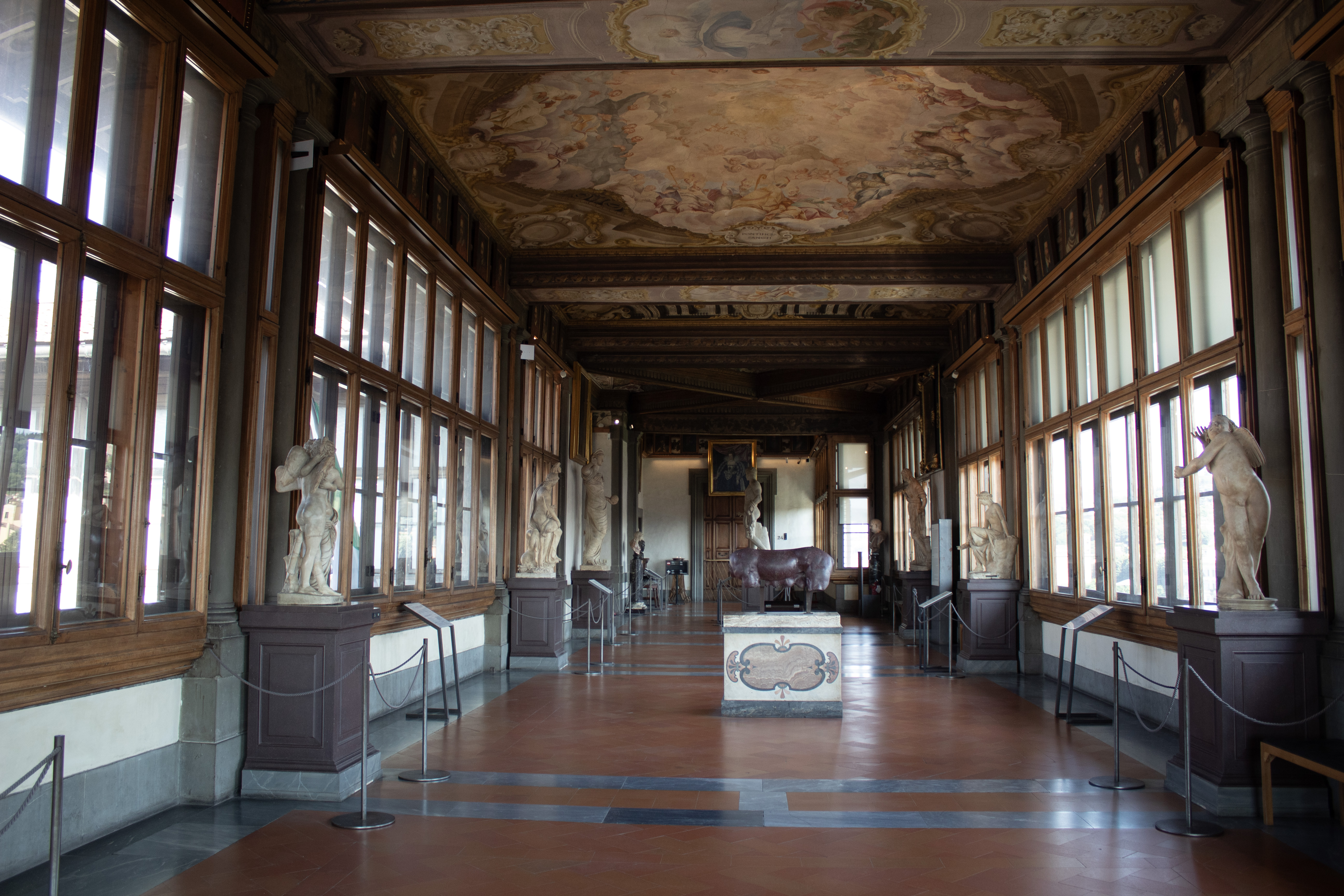 Il corridoio di mezzogiorno, in particolare, era destinato ad ospitare i grandi bronzi antichi come la Chimera, capolavoro della bronzistica etrusca dei primi del IV secolo a.C., e l’Arringatore, raro esempio della statuaria ufficiale degli inizi del I secolo a.C. Queste opere, insieme ad altre preziose testimonianze della bronzistica romana come l’Idolino e la Minerva di Arezzo, costituirono il vanto delle collezioni medicee e, dopo essere state per secoli esposte in Galleria, furono trasferite solo negli ultimi decenni del XIX secolo al Museo Archeologico Nazionale di Firenze, dove si trovano ancor oggi.