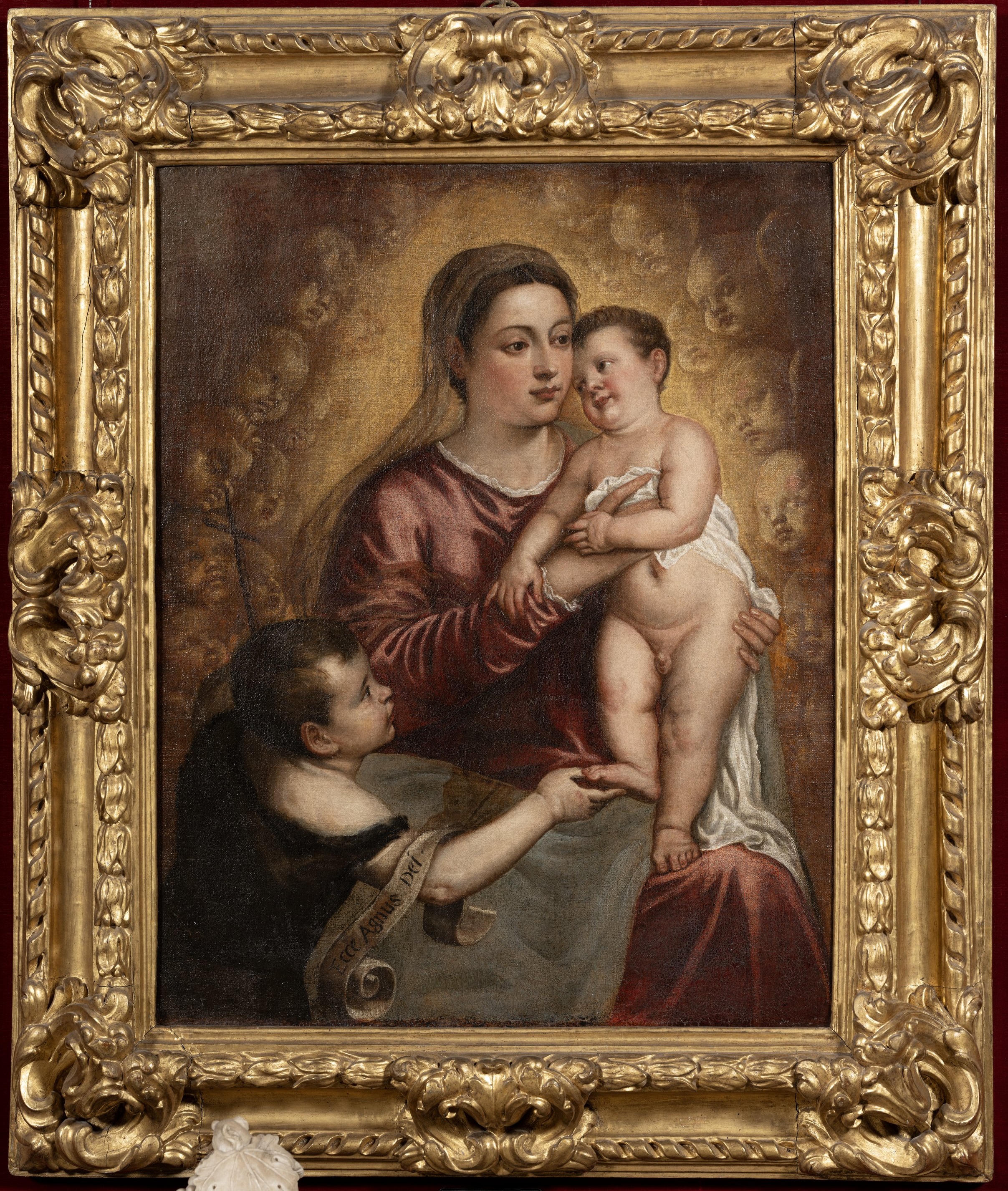 Proprio la presenza di queste varianti di questi altri dipinti, molto simili a quello degli Uffizi, ha fatto ragionevolmente pensare che esistesse un originale prototipo di mano di Tiziano, da cui discenderebbero tutti gli altri dipinti realizzati nell’ambito della sua bottega. Il nostro esemplare si contraddistingue per la buona qualità e probabilmente fu realizzato da Marco Vecellio, nipote di Tiziano. La somiglianza tra la Madonna di quest’opera e la Venere del dipinto con la Venere con Cupido e un cagnolino di Tiziano, conservata sempre agli Uffizi, ha fatto ipotizzare che l’originale tizianesco risalisse agli anni Sessanta del Cinquecento.