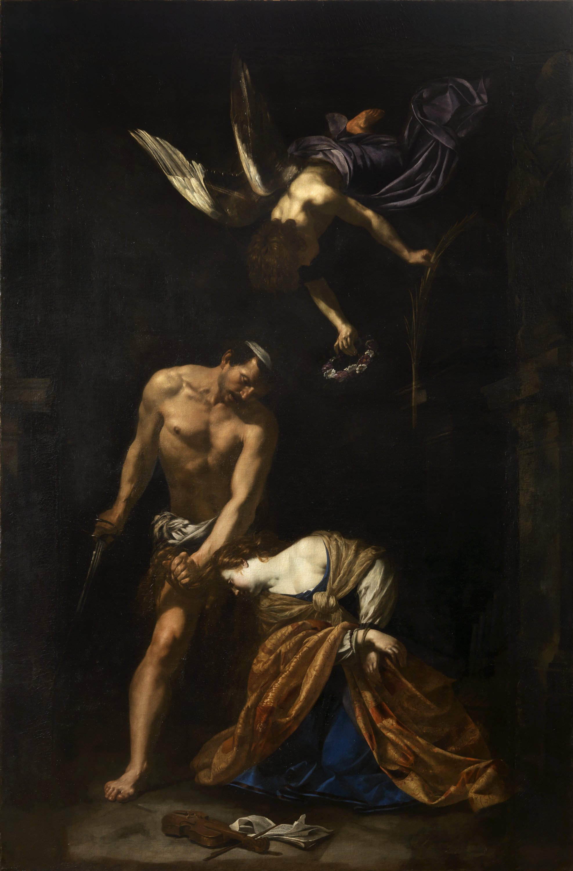 In quest'opera, databile tra il 1620 e il 1625, Riminaldi dimostra chiaramente di avere assimilato appieno la lezione di Caravaggio persino nella puntuale citazione di alcune sue opere, come il “Martirio di San Matteo”. La teatralità dell’impaginazione scenica, con la sapiente orchestrazione del cono di luce che investe i tre protagonisti, accentua sia la potenza espressiva del carnefice che afferra le chiome di Santa Cecilia per scoprirne il collo e vibrare il colpo di spada, sia il dinamismo dell'angelo che si precipita verso la martire per omaggiarla con i simboli della santità e del martirio. Su questo impianto di stretta osservanza caravaggesca l'artista innesta spunti d’indirizzo decisamente classicista, tratti da Simon Vouet e Guido Reni, ravvisabili nella raffinata mondanità delle sontuose vesti di broccato e nella tenera sensualità della martire.