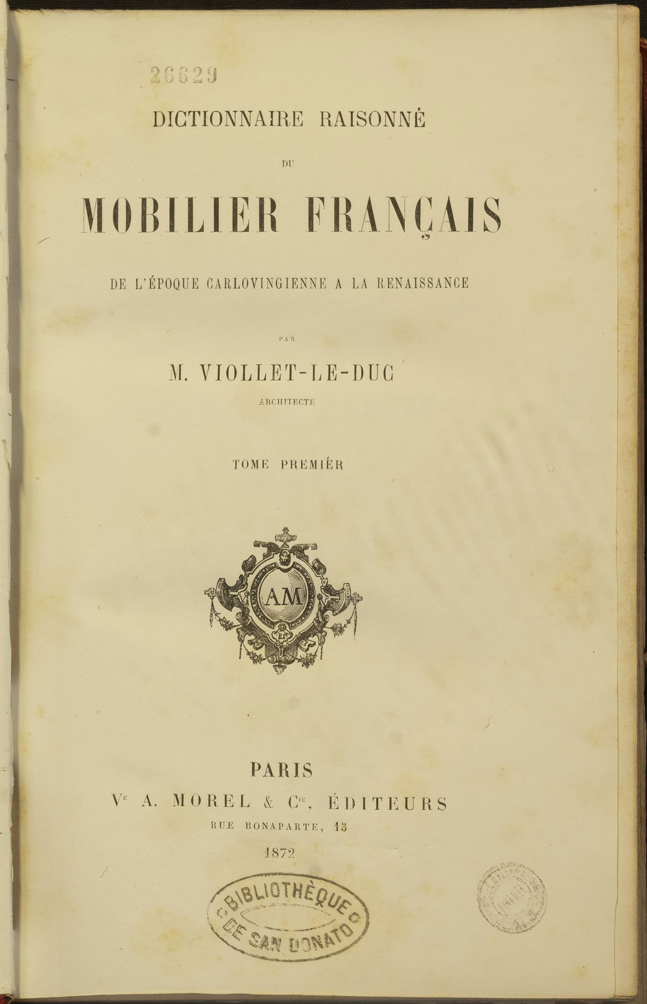 Dictionnaire raisonné du mobilier français de l'époque carlovingienne à la Renaissance, Paris, A. Morel, 1872-1875, volume 1 di 6 : Meubles