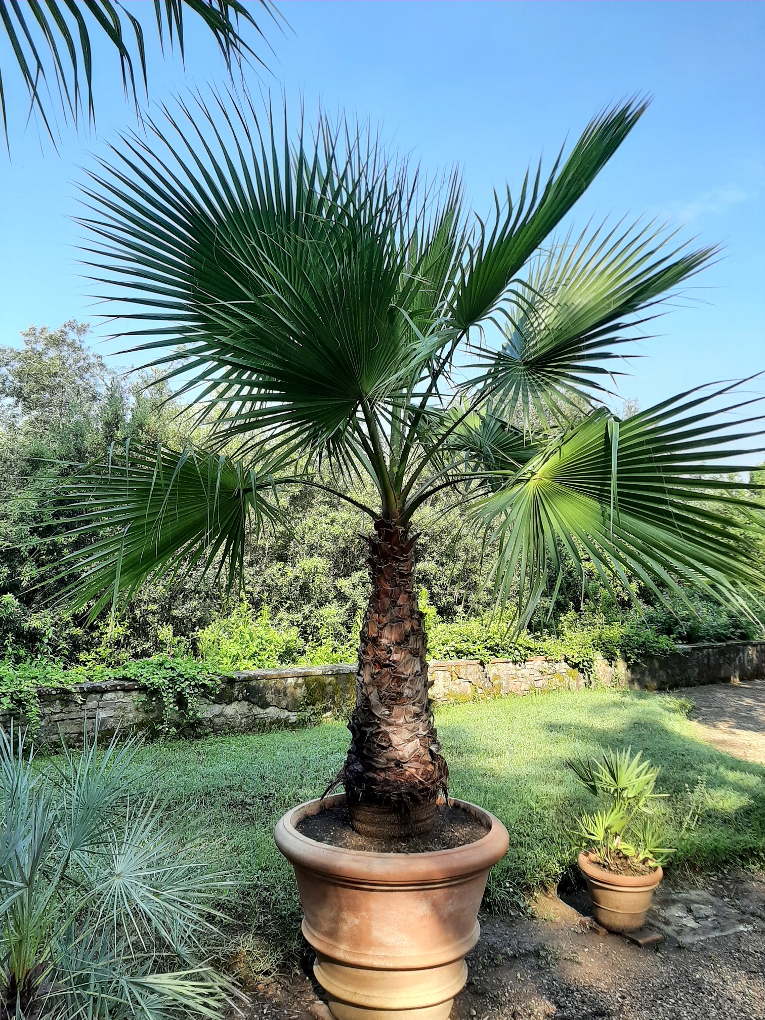 La Washingtonia Filifera è una palma originaria della California del sud, dell’Arizona sud-occidentale e del Messico settentrionale. Molto vigorosa e a grande sviluppo, con uno stipite spesso, marrone ed allargato alla sua base. Le foglie a ventaglio hanno un picciolo lungo sino a 2 m. Fiorisce da giugno ad agosto e i fiori sono piccoli e riuniti in mazzi bianco panna; i frutti sono neri e simili a bacche Può sopportare temperature fino a −10/−12 C, infatti è una delle palme più resistenti per i climi temperati. A crescita abbastanza rapida necessita di terreni ben drenati e di esposizione soleggiata. Questa palma è adatta per creare alberature pubbliche nei litorali e viene ampiamente coltivata nei giardini privati soprattutto mediterranei.