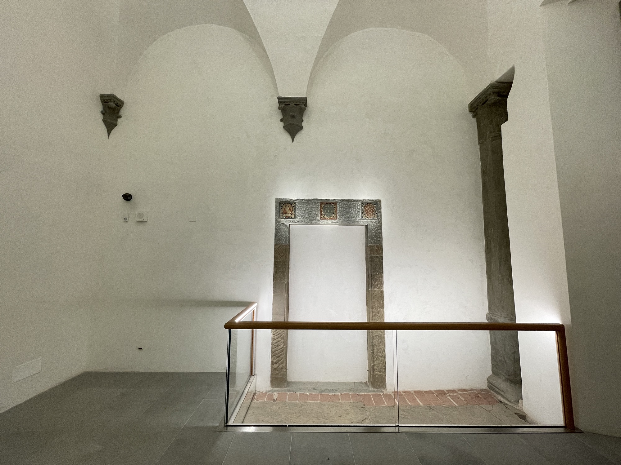 In questa porzione dell’ala di ponente si trovava anticamente la Zecca fiorentina, dove si batteva il fiorino d’oro, la moneta che - coniata per la prima volta nel 1252 – rappresentò fino alla fine del XIV secolo la valuta di maggior pregio del Mediterraneo. Il complesso della Zecca venne inglobato dalla fabbrica vasariana degli Uffizi e le recenti indagini archeologiche hanno rinvenuto la torre della Zecca, due forni fusori (uno per l’oro e l’altro per l’argento), alcuni crogioli di fusione e le tracce di una poderosa cassaforte in muratura.