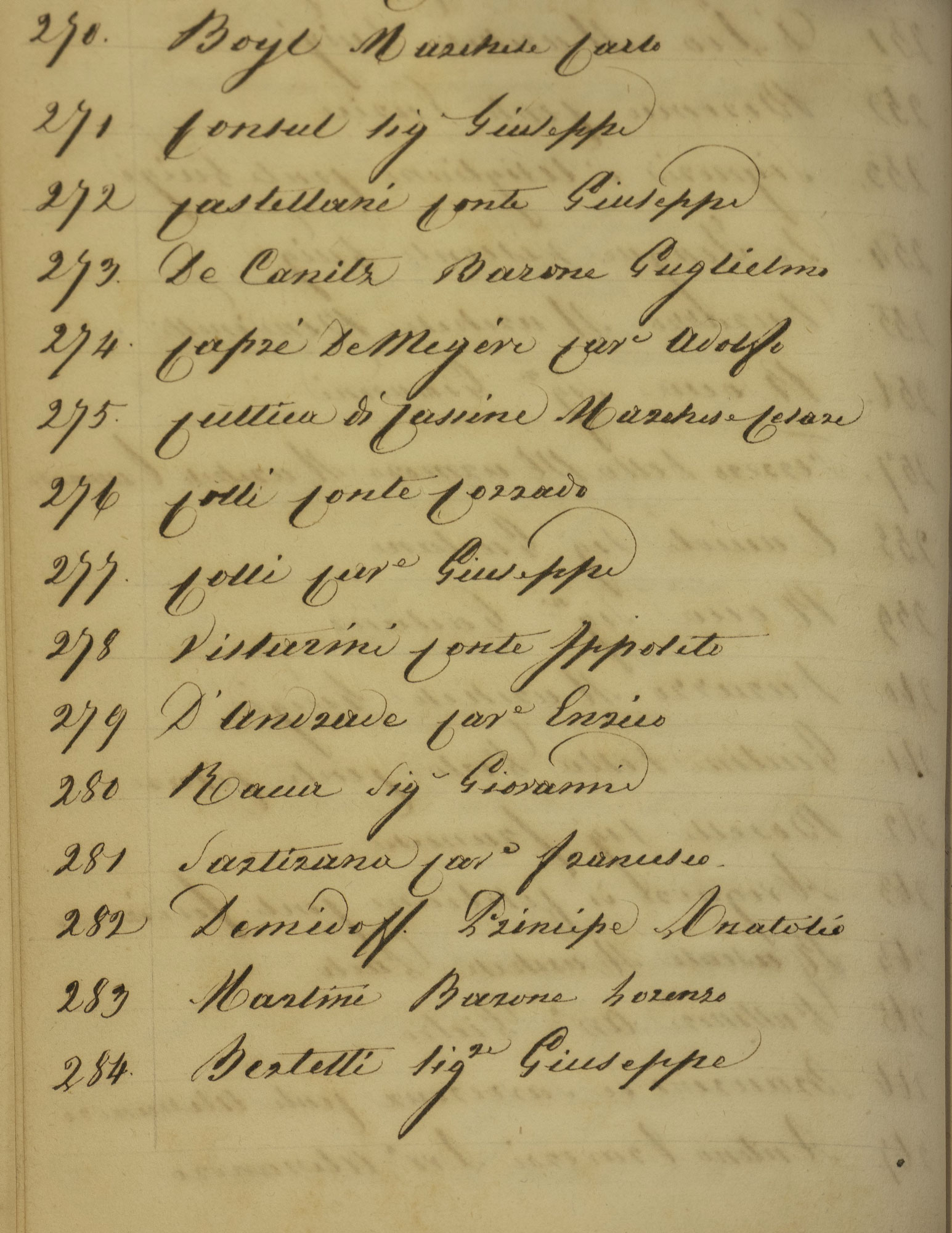 Questo libretto sul Regolamento delle corse di cavalli, pubblicato a Torino dalla Società Nazionale nel 1853, ha il timbro di provenienza dalla “Bibliothèque de San Donato” e un’etichetta con graziosa cornice, recante la sigla “S2”, che si riferisce, probabilmente, alla collocazione dell’esemplare nella dispersa biblioteca della villa Demidov di San Donato a Firenze. Il libretto, testimone della passione per i cavalli di Anatolij Demidov, è un esemplare di piccolo formato, elegantemente rilegato in velluto cremisi, con stemma metallico dei Demidov al centro del piatto anteriore, sormontato da corona, che riporta il disegno stilizzato degli strumenti del lavoro in miniera, fonte delle immense ricchezze di famiglia. Lo stemma è accompagnato dal motto Fatti non parole, in russo (Delami ne slovami), che allude alle attività di beneficienza promosse tradizionalmente dalla famiglia. L’esemplare presenta un interfoglio manoscritto aggiunto all’elenco dei soci, in cui è scritto, a penna, il nome “Demidoff, Principe Anatolio”. Nell’elenco dei soci figurano, fra gli altri, il conte di Cavour Camillo Benso e suo fratello Giacomo. Questo esemplare entrò nella Biblioteca degli Uffizi come “dono di casa Demidoff”, nel giugno 1975, dopo l’asta degli arredi della Villa Demidoff, a Pratolino, disposta dall’ultimo erede della famiglia, Paolo Karageorgevič, nel 1969.