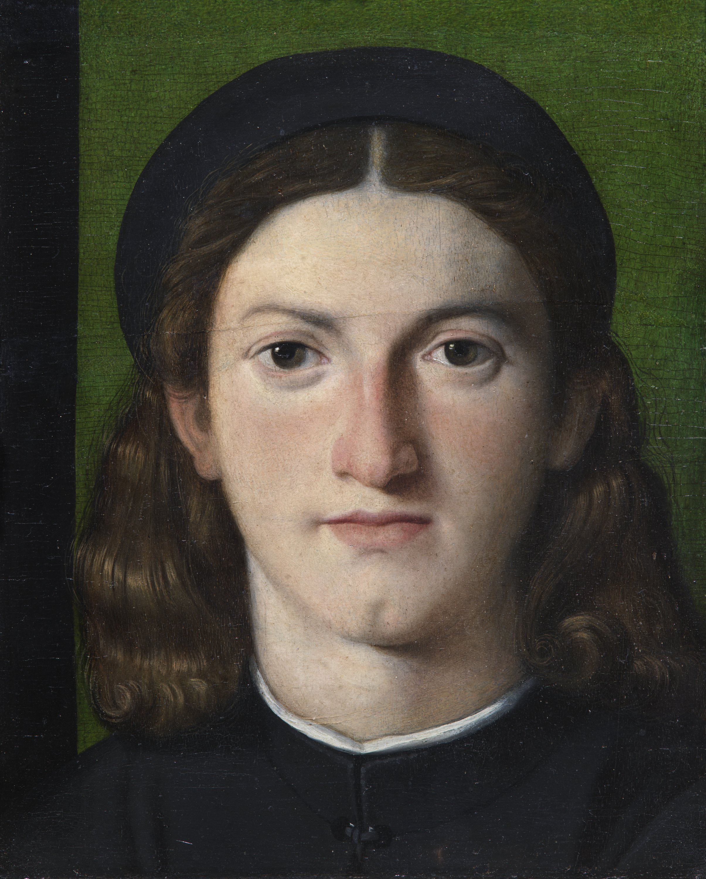 L’esistenza di un abbozzo di redazione più antica dell’immagine del giovane uomo, impostata con il profilo del volto di tre quarti –come in alcuni ritratti di Alvise Vivarini - è documentata da alcune vecchie indagini radiografiche. Parimenti derivato dai dipinti del Vivarini appare il taglio del ritratto d’impostazione frontale e molto ravvicinato, portato poco sotto il collo e culminante nell’incontro dello sguardo intenso degli occhi spalancati con quello dell’osservatore.