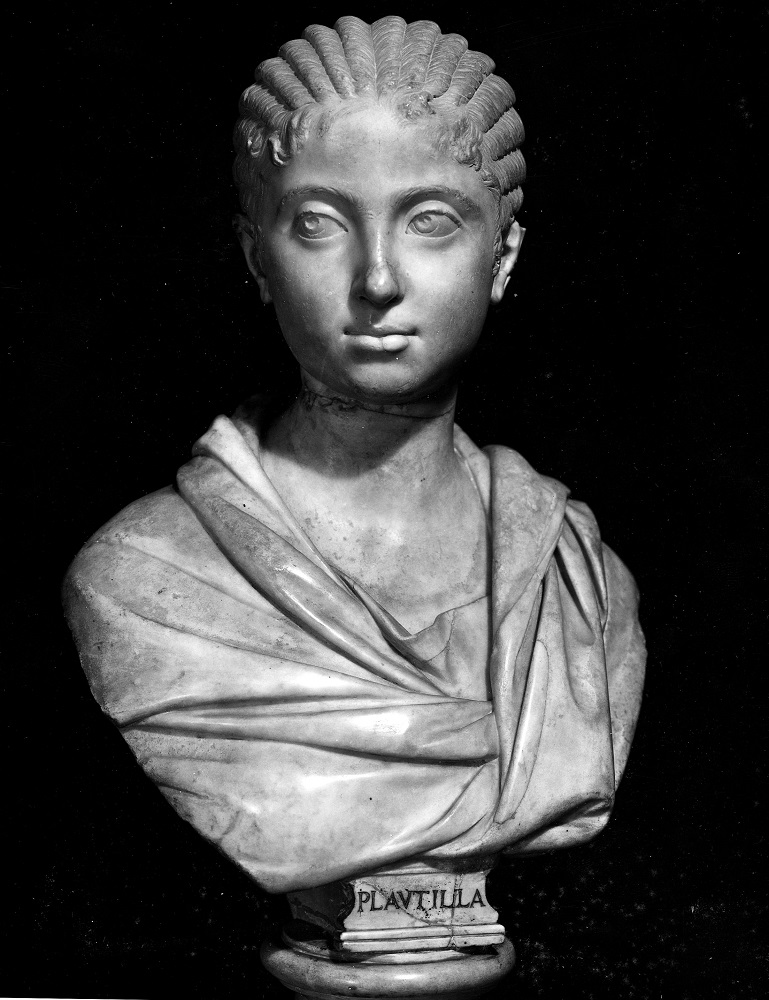 Il ritratto rappresenta una giovane ragazza, dai tratti ancora vagamente infantili, caratterizzata da una particolare acconciatura “a melone”, consistente in dodici trecce aderenti al cranio e raccolte alla base della nuca in un toupet. La bocca appena socchiusa, la testa piegata verso destra e lo sguardo rivolto verso il basso contribuiscono a conferire un’espressione quasi malinconica al volto, avvicinando la scultura agli schemi iconografici solitamente utilizzati per i ritratti funerari. Nonostante alcuni elementi di reimpiego, sia la testa sia il busto sono considerati antichi, ma forse non fra loro pertinenti: il ritratto infatti pare risalire al primo periodo severiano, mentre l’epigrafe AUTIL (integrata come PLAUTILLA) si data per paleografia al II secolo d.C. Non si esclude che la scultura raffiguri una privata che scelse di uniformarsi ai modelli ritrattistici ufficiali di Plautilla, la giovane imperatrice sposata appena quattordicenne con l’imperatore Caracalla nel 202 d.C. e, da questi, prima esiliata a Lipari e poi messa a morte nel 212 d.C.
