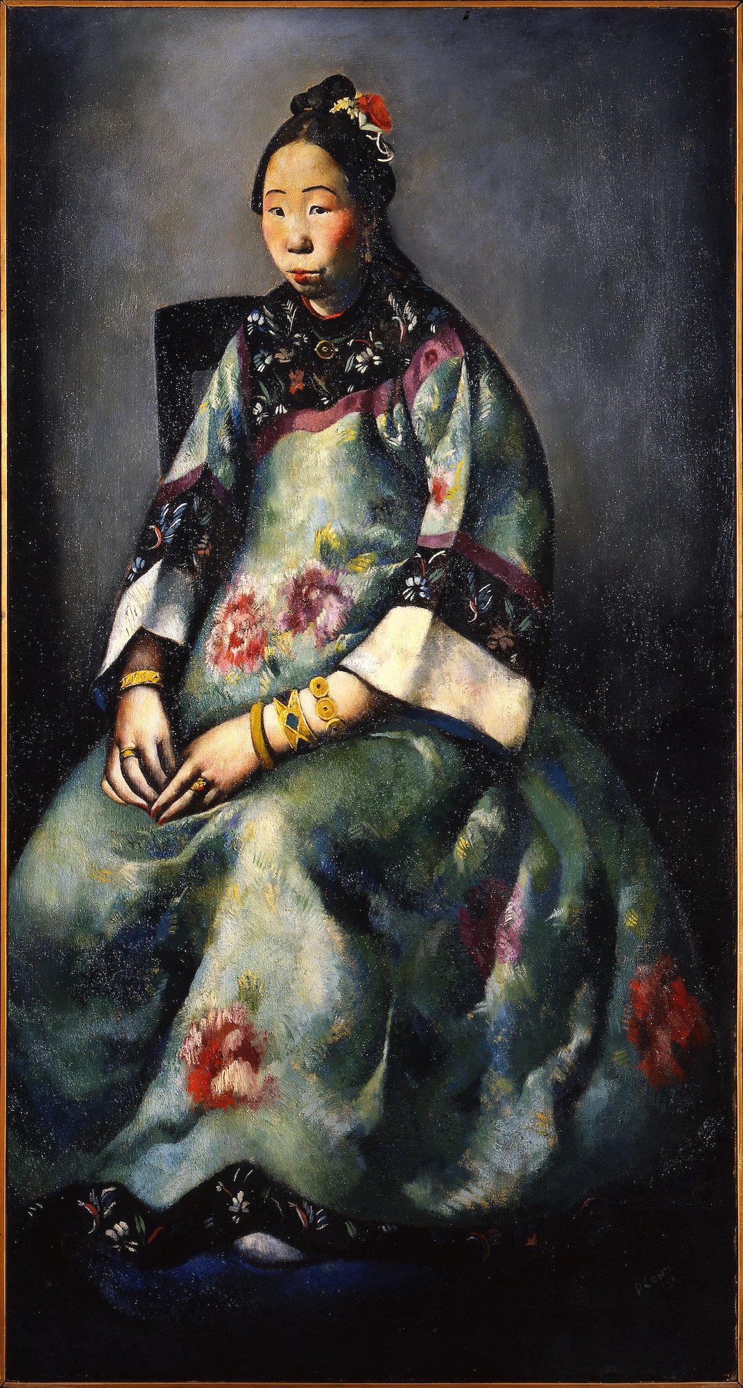 “In soli quattro giorni […] di lavoro incredibilmente intenso, sono riuscito a mettere alla luce compiutamente ‘Liung-Juk’: un’opera che da tanto tempo mi si faceva sentire e che costituisce qualcosa di più che una parentesi di riposo al lungo travaglio del trittico – ma, vorrei dire, un dono frenetico, e pieno di agguati romanzeschi che offro agli amici”.Così in una lettera all’amico Alessandro Pavolini il giovane pittore descrive la redazione di una delle opere da lui dedicate al tema esotico, e dipinta durante la realizzazione del trittico della Crocifissione per la chiesa fiorentina di Santa Maria Novella. L’occasione che generò l’opera fu il magnifico abito imperiale indossato dalla governante cinese dell’amante di Primo Conti, una donna olandese che aveva vissuto a Singapore.Il trionfo pirotecnico di colori messo in risalto dal fondo neutro, contrasta con l’espressione della donna, quasi intimidita e niente affatto principesca.