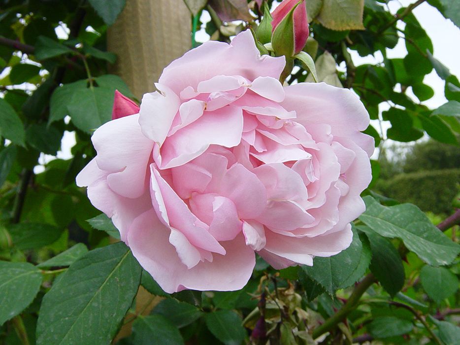 Antica rosa sarmentosa (cioè che si sviluppa in altezza grazie ai sarmenti) con foglie verde lucido e toni rosso. Ha rami vigorosi con spine grandi uncinate. E’ molto fiorifera in piena fioritura primaverile che però non si ripete nel corso dell’anno. I fiori sono piuttosto disordinati, di un colore rosa aragosta con base dorata, e si schiariscono verso il rosa incarnato con l’età. E’ molto profumata e si adatta bene a formare pillar (termine che definisce la crescita in altezza di rose sarmentose attorno a pilastri o a pali da sostegno) e spalliere.