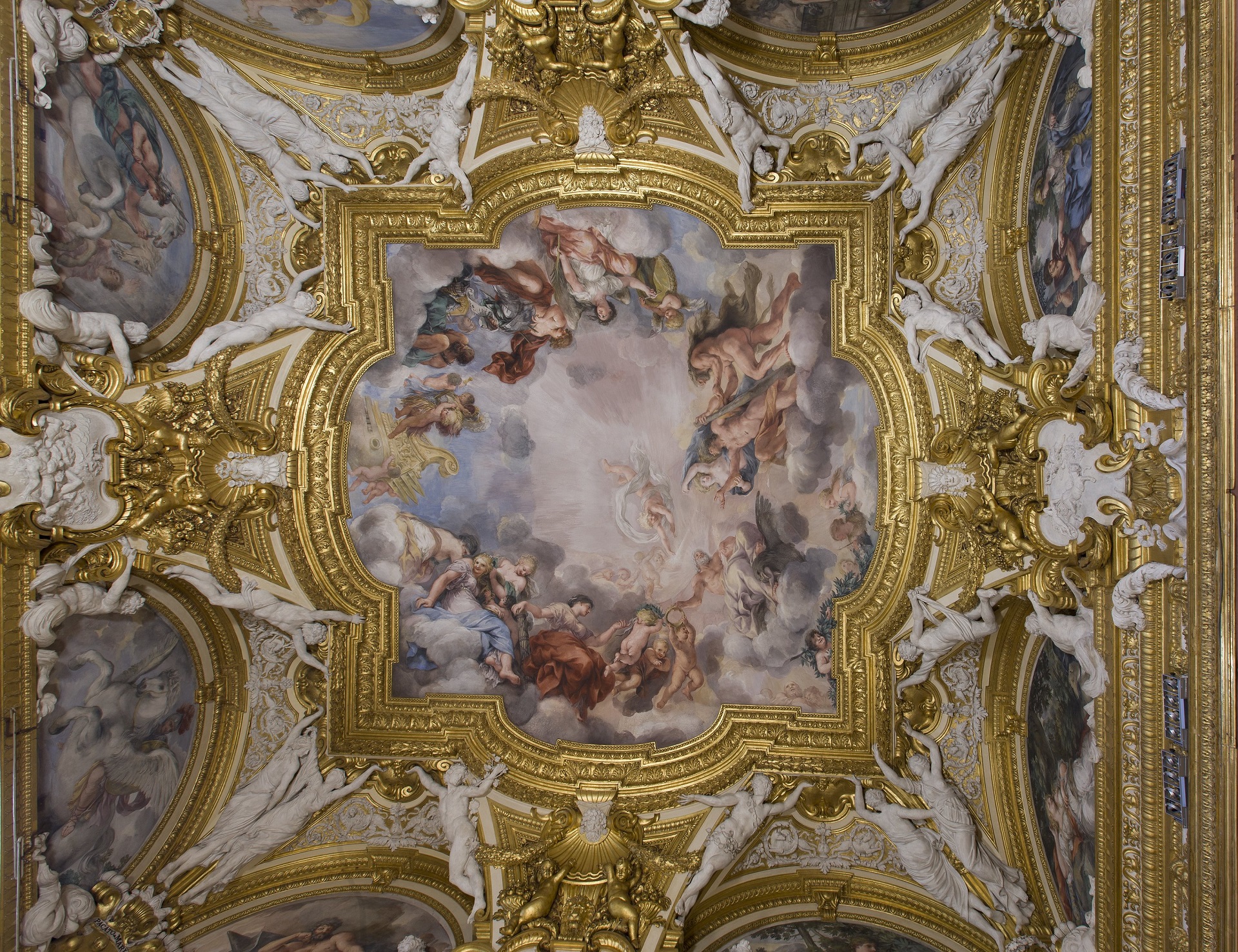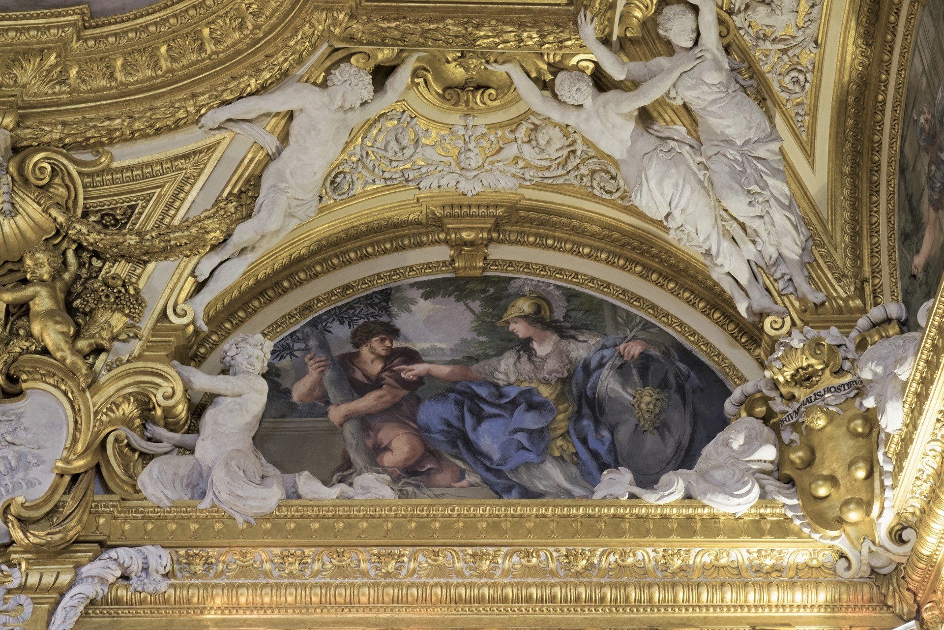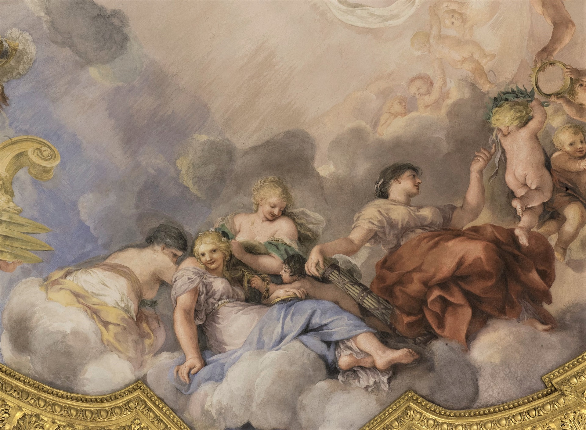 Il tema qui scelto, Giove che incorona il principe, a cui Ercole ha consegnato la sua clava, mette in risalto il ruolo di comando che la stirpe dei Medici era chiamata a rivestire e legittima l’ascesa del giovane erede al potere granducale, concludendone il percorso educativo dipanato nelle sale precedenti, ed evocato nelle lunette ad affresco in cui vengono ritratte le molte divinità dell’Olimpo – Minerva, Apollo, Mercurio, Marte – che lo hanno accompagnato e supportato nel suo ideale percorso formativo, dall’adolescenza all’età senile. Vittorioso, il principe scende dunque dalla nave degli Argonauti, seguito dalla Vittoria che incide la lettera M (Medici) sullo scudo, ed è accolto da Giove attorniato da quattro personaggi femminili, probabili raffigurazioni allegoriche, omaggio dell’iconografo alle Medicea Sidera , ovvero i quattro satelliti del pianeta Giove, scoperti da Galileo Galilei ed annunciati nel suo Sidereus Nuncius, dedicato a Cosimo II de’ Medici del 1610.