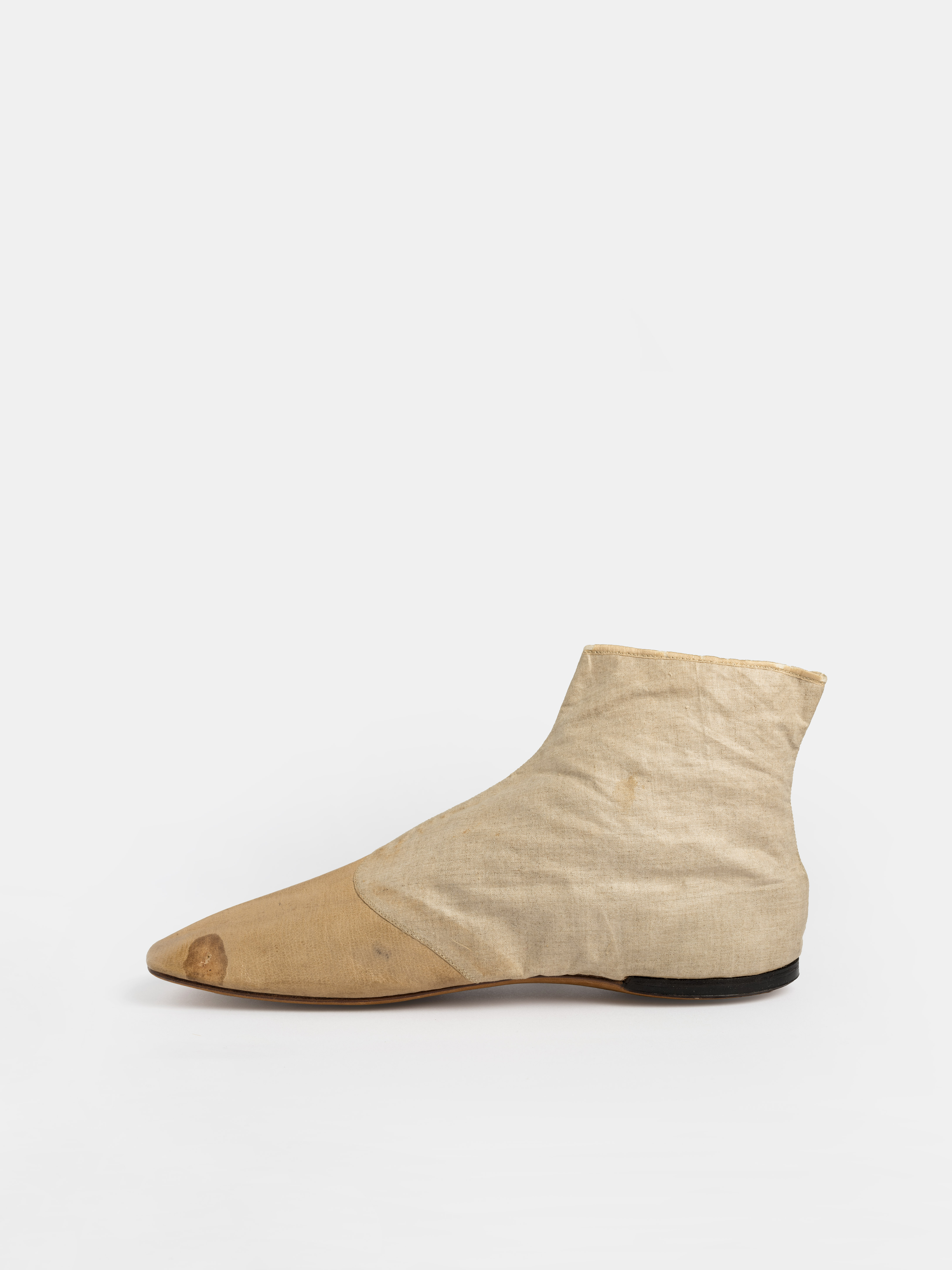 Scarpa femminile da ballo in tela bianca con nastrini.