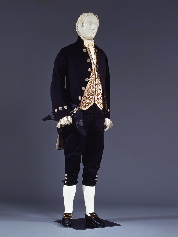 Uniforme da cerimonia inglese, composta da marsina, gilet, calzoni e feluca. La marsina è in panno di lana con collo a fascetta, maniche strette con paramani in merletto; mostre stondate con 6 bottoni in marcassite e finte asole; falde sfuggenti e apertura centrale posteriore in due cannoni.Gilet in gros di seta con ricami in filato policromo a motivi floreali, chiusura frontale con bottoni foderati; tasche sagomate a patta; piccole falde sfuggenti; allacciatura posteriore a nastro. Calzoni a modello culottes in panno nero, con patta; al ginocchio con tre bottoni in marcassite e cinturino.L’uniforme è completa di feluca.Iscrizione: J. H. Bradley .L’abito appartiene, come riscontrato da documentazioni e iscrizione, al pittore inglese John Henry Bradley che visse e morì a Firenze, senza abbandonare gli usi e costumi inglesi. L’opera è un’importante esempio di uniforme civile, la cui foggia ideata nel’700 in pieno ancient régime, rimarrà invariata fino alla fine del XIX secolo. Questo esemplare rispecchia l’etichetta di corte inglese imposta dalla regina Vittoria tra il 1860-1869. Successivamente verrà modificata la tipologia del tessuto con l’introduzione del velluto, secondo le disposizioni dell’Ufficio del Ciambellano.