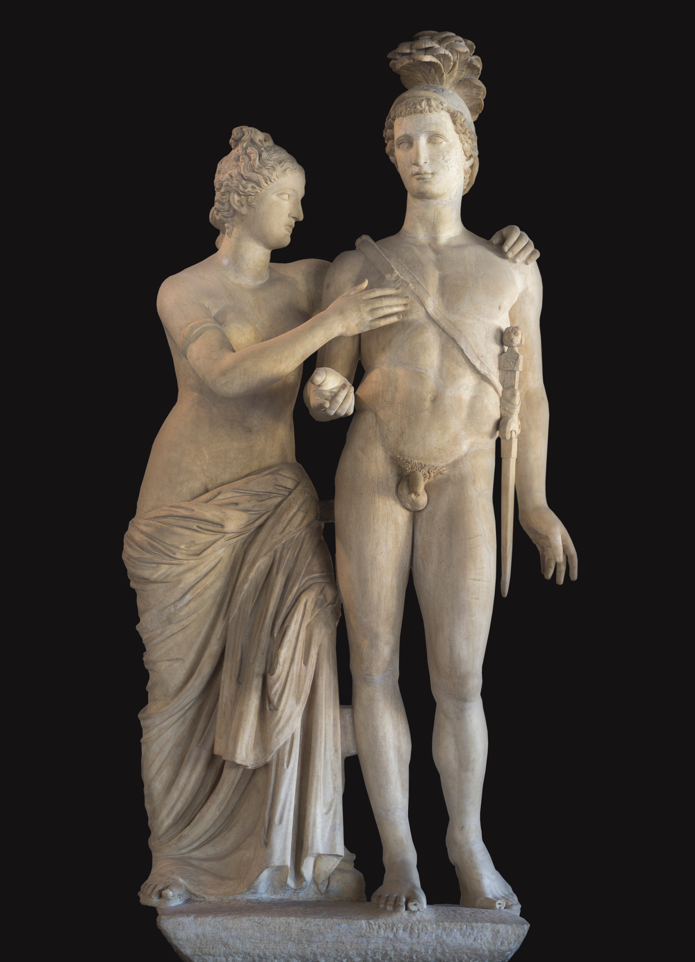 Se Venere richiama il modello dell’Afrodite di Capua, conservata presso il Museo Archeologico Nazionale di Napoli, il secondo si ispira al tipo dell'Ares Borghese (oggi custodito al Louvre), elaborato ad Atene nel V sec. a.C.