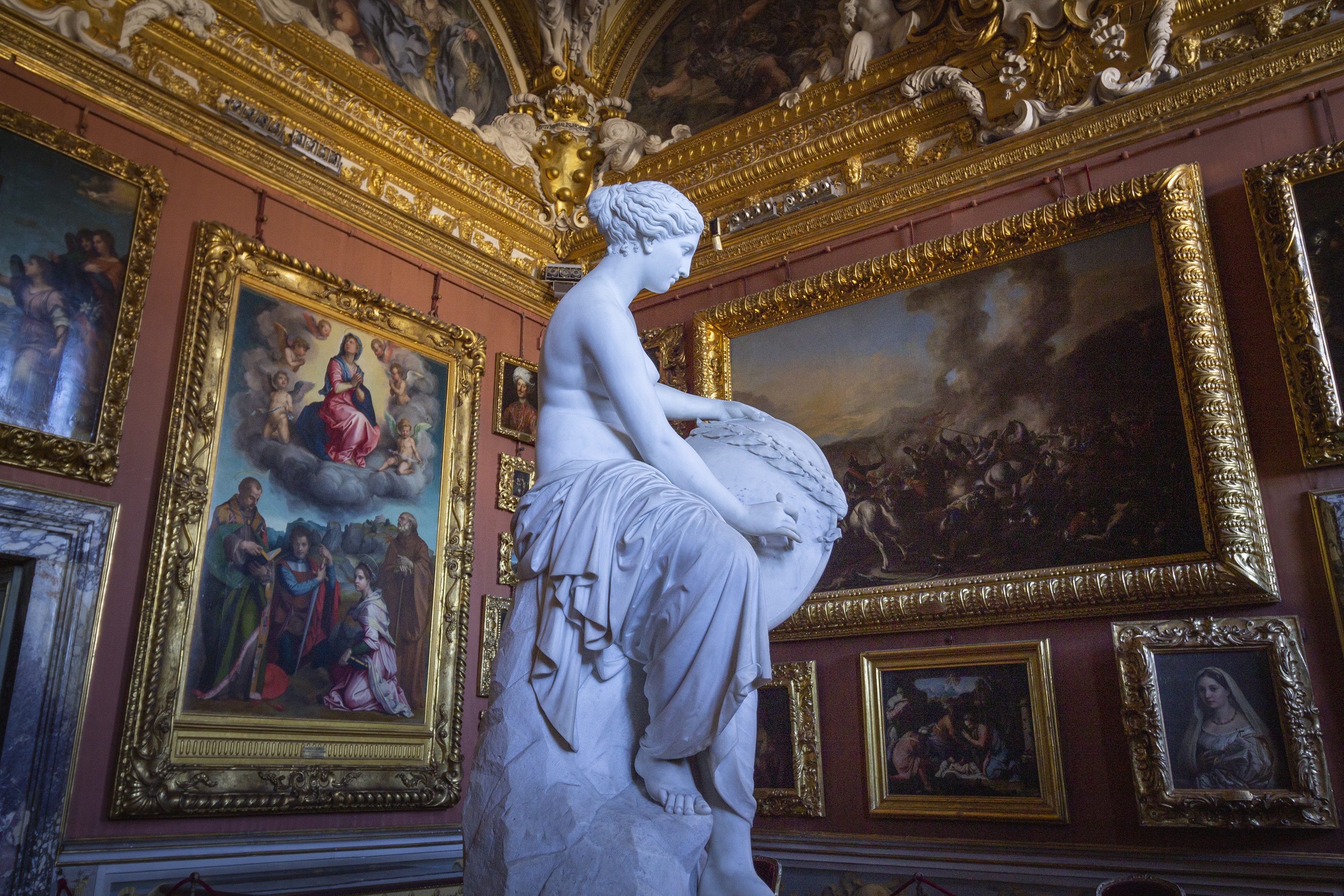 Il gesto della Vittoria, impegnata a scrivere sullo scudo, è simbolico, ma allo stesso tempo attuale nel suo messaggio patriottico. Con quest’opera Consani, i cui esordi risalgono a circa trent’anni prima, omaggia gli sforzi profusi dal re Vittorio Emanuele II nell’unificazione d’Italia. Lo scultore, nel 1848 militante come volontario nel Battaglione Toscano e preso dall’entusiasmo per i successi conseguiti durante la seconda guerra d’indipendenza nel Lombardo Veneto (1859), lavorò quattro anni alla scultura (che sarebbe stata offerta in nome dei comuni toscani al sovrano) con l’appoggio di Paolo Sinibaldi, sindaco di Lucca. Ultimata nel 1867, l’opera fu posta fin da subito nella Sala di Giove, adibita in epoca medicea a sala del trono dove la statua tuttora dialoga con gli affreschi secenteschi eseguiti da Pietro da Cortona per Ferdinando II dei Medici.